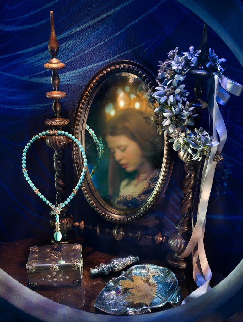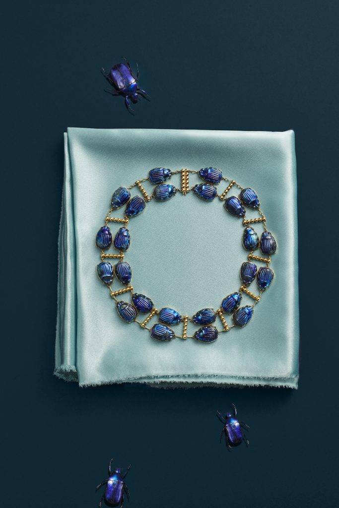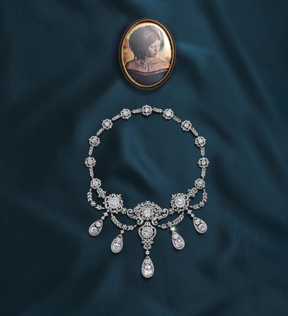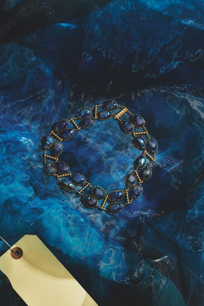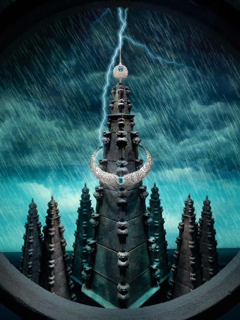 影片借由从蒂芙尼古董珍藏库挑选的一系列珠宝、配饰及纯银器物,为设定于19世纪50年代的故事背景,进一步增添了真实感与历史气息。在众多传奇珠宝中,朱莉娅·曼森(Julia Munson)和梅塔·欧弗贝克(Meta Overbeck)在路易斯·康福特·蒂芙尼(Louis Comfort Tiffany)指导下创作的作品尤为令人瞩目。作为品牌历史上极具开创精神的艺术总监,路易斯·康福特·蒂芙尼以大胆的创新理念与对自然的深刻敬意而闻名,这与《弗兰肯斯坦》作者玛丽·雪莱的创作精神不谋而合。值得一提的是,这些典藏珠宝中,有许多作品在现代还从未被佩戴展示过。