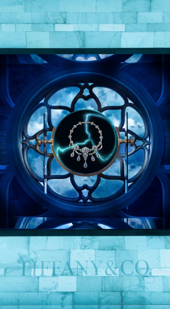 特别设计的数字屏幕及动态影像,与充满戏剧张力的橱窗布景融为一体,并在奥斯卡金像奖(Academy Award)得主亚历山大·德斯普拉(Alexandre Desplat)创作的恢弘影片配乐下同步呈现。璀璨的灯光装置将点亮第五大道,并于夜色中绽放出愈加绚烂的光芒。观众可通过扫描橱窗二维码,解锁独家幕后花絮。第五大道地标旗舰店内亦将特别呈现影片中米娅·高斯佩戴的多件蒂芙尼古董珠宝,展现了蒂芙尼艺术匠心与吉尔莫·德尔·托罗独特构想之间的共鸣。