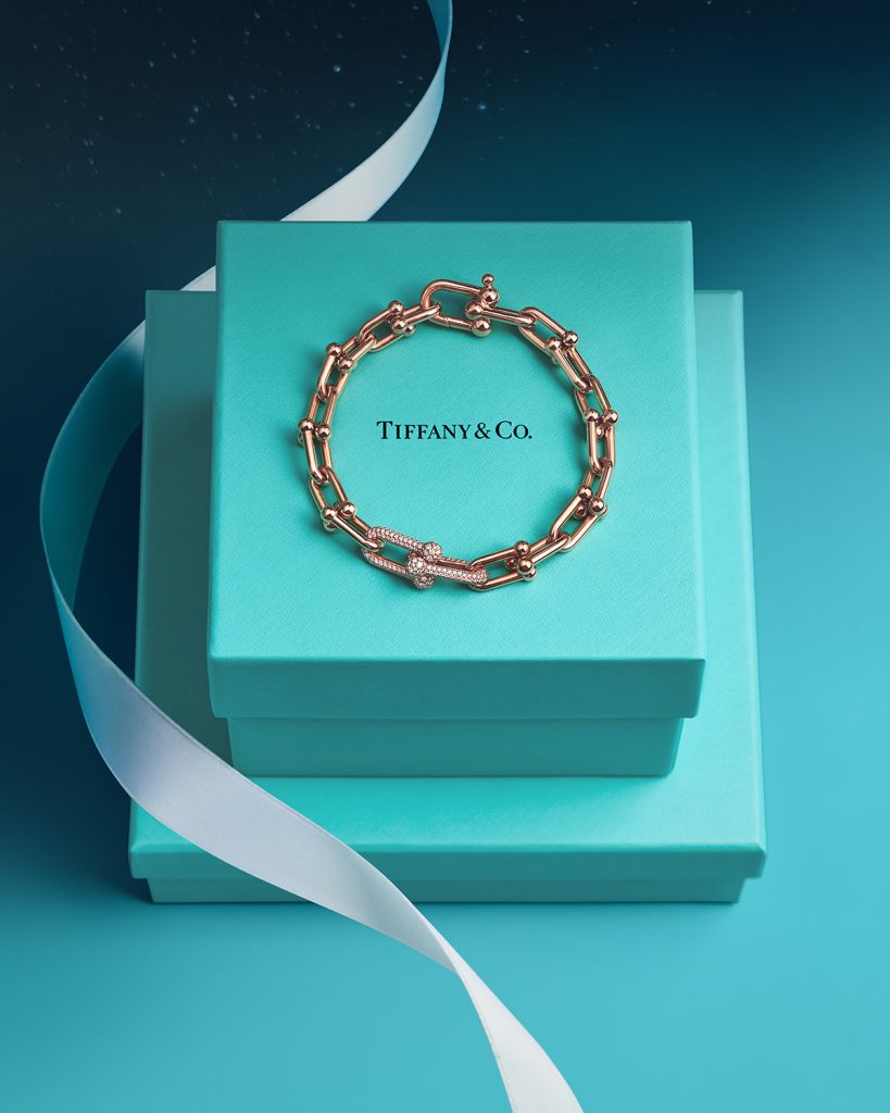 Tiffany HardWear系列象征爱的蜕变之力。灵感源自品牌1962年的一款手链作品,其标志性链环元素由工匠以严谨比例手工打造,不仅展现出力量与优雅的平衡之美,更凝结着爱赋予人的勇气与能量,令佩戴者在节日的每个时刻都焕发出独立而自信的光彩。