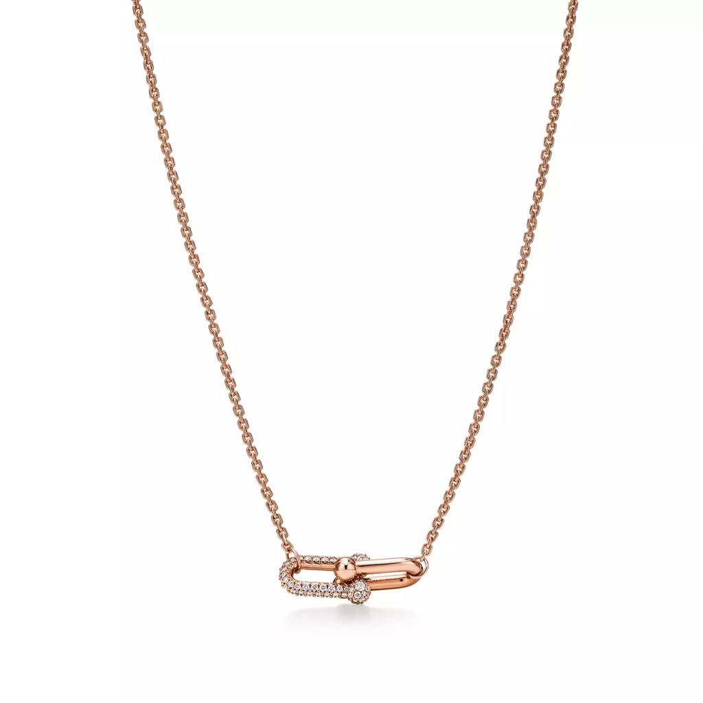 欧阳娜娜佩戴Tiffany HardWear系列 18K玫瑰金镶钻双链环项链