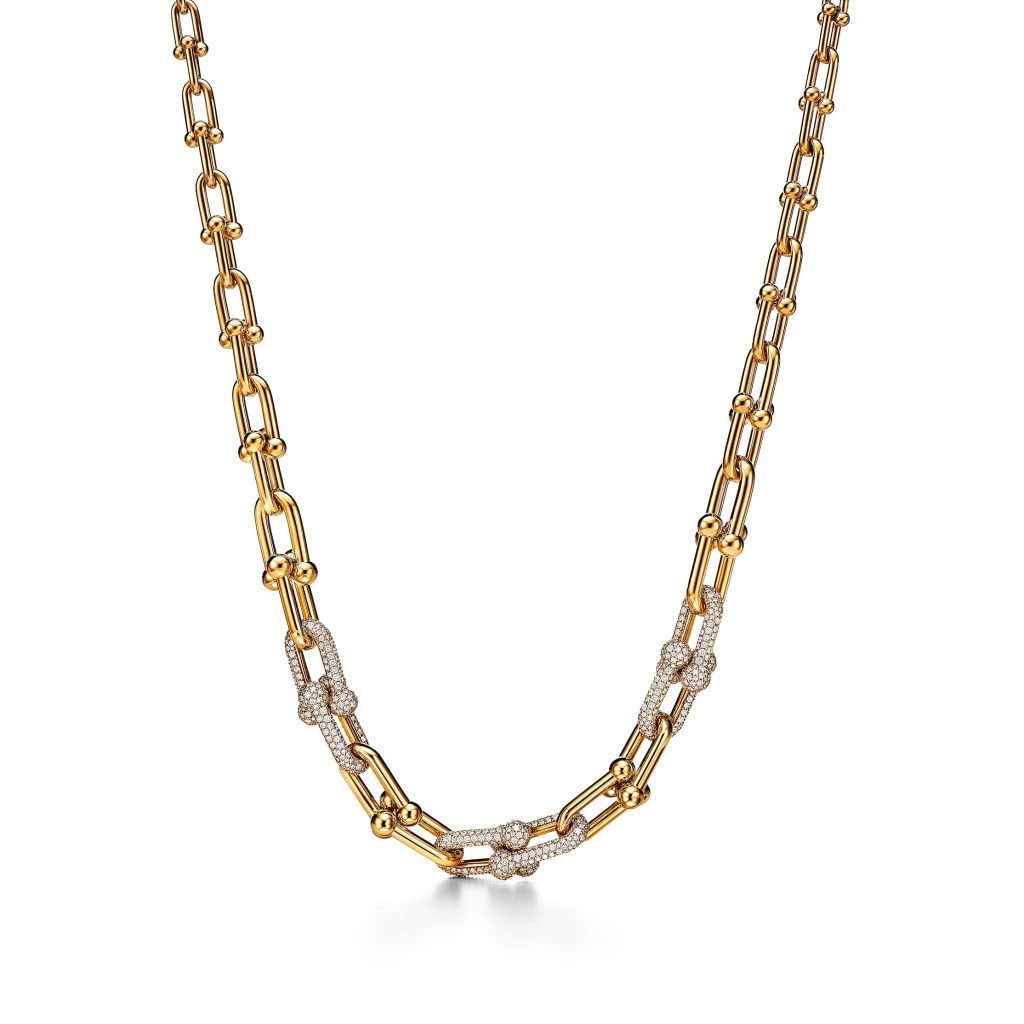 唐嫣佩戴Tiffany HardWear系列 18K黄金铺镶钻石渐变链环项链