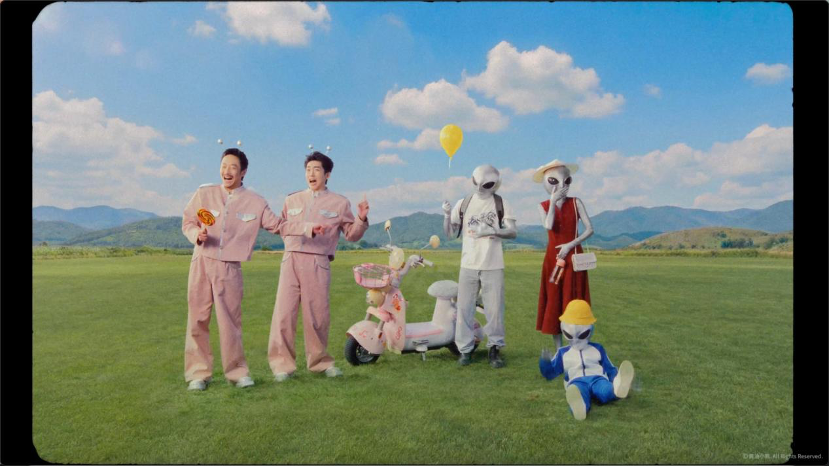 两位身穿粉嫩套装的推广大使骑着粉嫩敦敦“星际穿梭”,外星从和外星人上演极限拉扯的的荒诞,紧扣谐音梗和外星从喜剧风格展开的故事,用无厘头画面配合快节奏抽象,制造出强烈的搞怪趣味和破圈传播潜质,精准击中Z世代的笑点与传播欲,让品牌信息在轻松戏谑中完成心智渗透,笑着笑着,就爱上爱玛了。