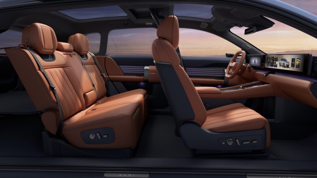 奥迪E7X的座舱是一个兼具格调、舒适与全方位互联的私享空间。在这里,数字智能全面赋能身心愉悦,极简的美学设计与精湛的匠心工艺相得益彰。该车型在德国设计,却深谙中国市场需求,将前沿科技与令人安心的舒适融为一体。座舱内氛围宁静平和,源于水平层叠的架构设计,与智能隐藏式出风口、工艺精细的音响网罩等功能无缝融合。