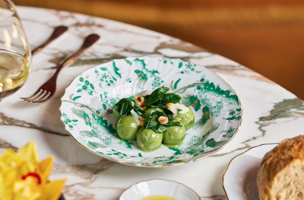 作为专为酒店量身打造的意式飨味空间,由Niko Romito主理的Il Ristorante – Niko Romito意大利餐厅承载了本次合作的灵感核心。主厨以当代视角演绎意式风味,成就别具一格的春季菜单。意式乳清芝士菠菜团子配榛子和帕马森奶酪,由Niko Romito特为上海宝格丽酒店演绎,以跨越文化的创意致敬沪上风味。受上海小笼包口感的启发,主厨将意大利乳清芝士与本地菠菜巧妙融合,制成轻盈柔滑的蒸制团子;佐以顺滑的帕马森奶酪酱汁,撒上香脆的榛子碎,迷人滋味沁润心脾。此外,更有帝王蟹配鲟鱼子酱及土豆,蛋白酥、柠檬慕斯、柠檬雪芭、草莓及罗勒,脆皮小乳猪配香橙焦糖汁等经典佳肴,为宾客呈现令人回味的当季时鲜。